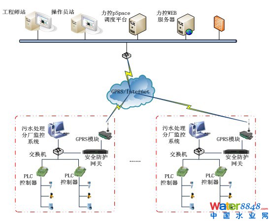 通過對污水處理廠現(xiàn)場的分析,需要在集團總部設總調(diào)度中心,從而監(jiān)管全國污水處理廠的運行情況,實現(xiàn)對分布在全國各地的污水處理廠的整體管理,運營部人員可以實時的了解到全國各地的污水處理情況,實時掌握污水處理的第一手資料。