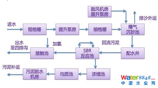 下面以典型污水廠為例,簡要介紹污水處理工藝流程。該污水處理廠是被國家列入三河三湖、渤海碧海水污染治理的重點項目。日處理污水能力達到4萬噸,污水處理后可達到《城鎮(zhèn)污水處理廠污染物排放標準》一級A標準,排放水質(zhì)可直接用于農(nóng)田灌溉。初步污水處理工藝采用MSBR工藝即序批式活性污泥處理工藝;污泥處理工藝推薦采用帶式濃縮、脫水一體機濃縮脫水;消毒工藝采用紫外線消毒。污水經(jīng)處理后作為中水排入附近深化處理塘進行自然凈化,最終全部回用。該項目投入運營后,每年可以減少近千萬噸的污水排放量,不僅可大大改善該縣城區(qū)居民的居住環(huán)境,而且對改善該縣及周邊地區(qū)的海域水質(zhì)起到關鍵性的作用,對縣域經(jīng)濟社會的可持續(xù)發(fā)展具有重要意義。