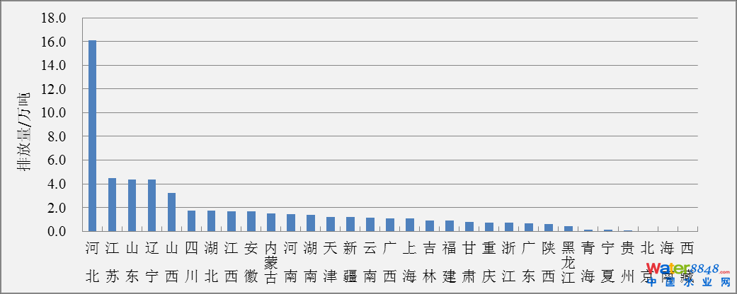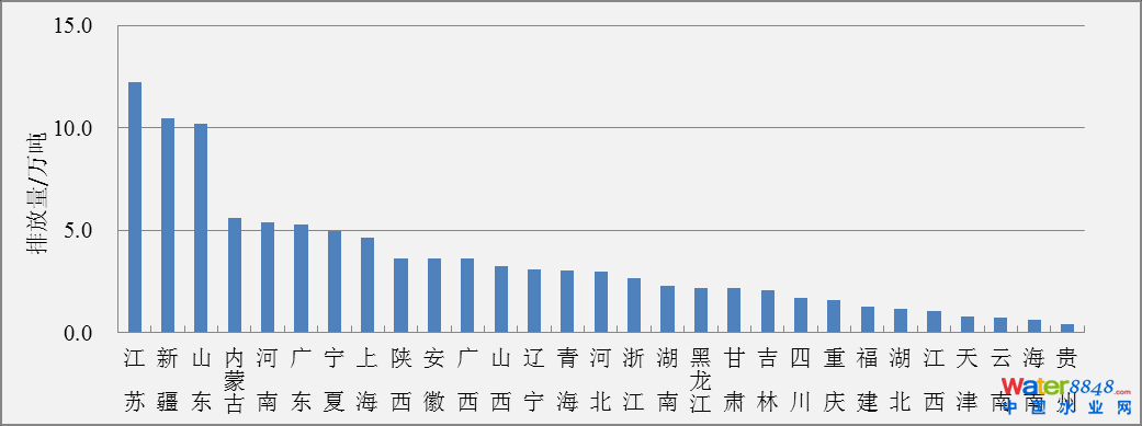 圖3-14 各地區(qū)非金屬礦物制品業(yè)氮氧化物排放情況