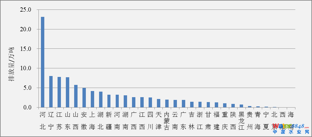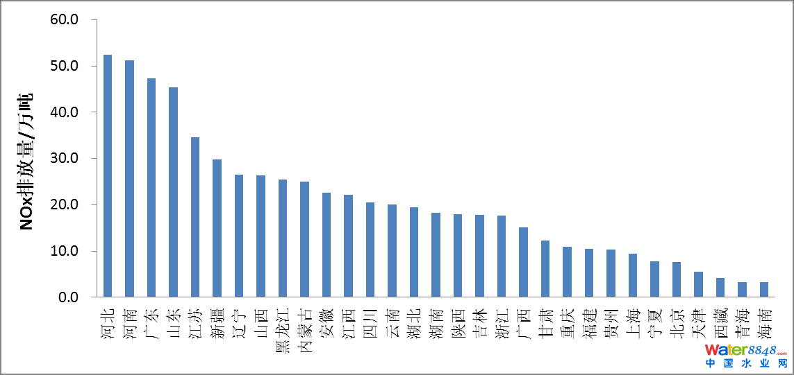 圖3-5 各地區(qū)電力、熱力生產(chǎn)和供應(yīng)業(yè)氮氧化物排放情況