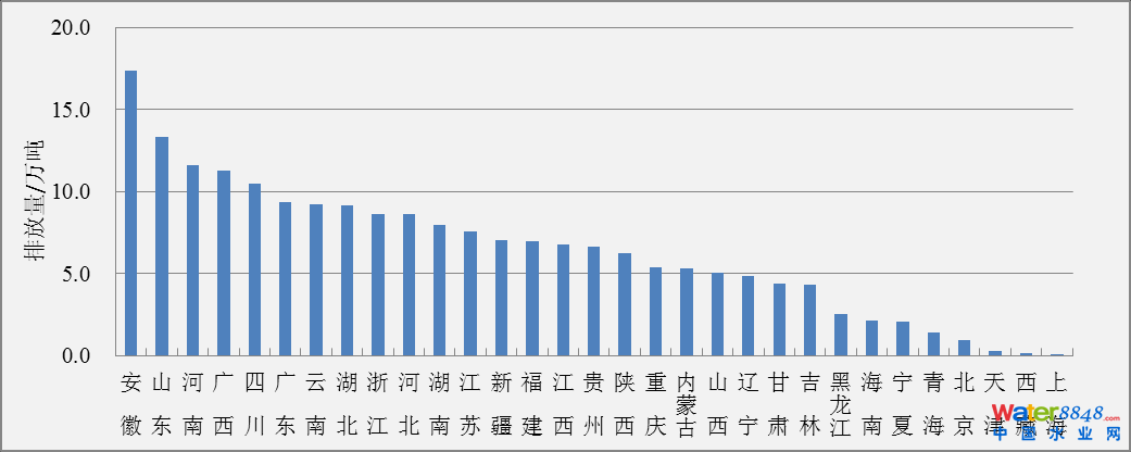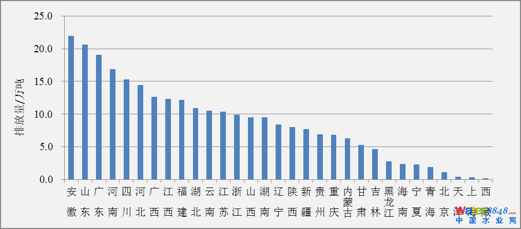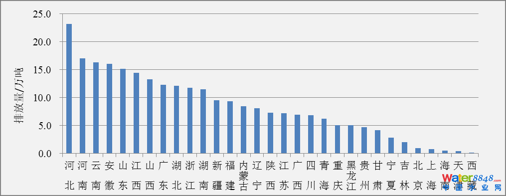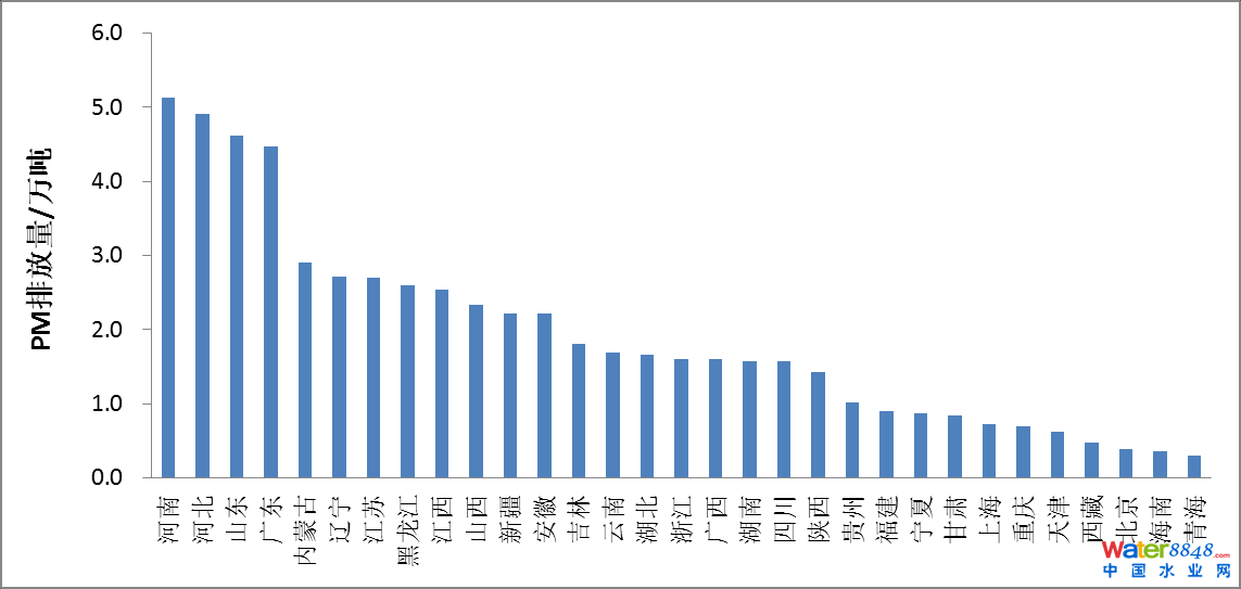 圖3-31 2013年全國(guó)各省份機(jī)動(dòng)車(chē)顆粒物(PM)排放量 |