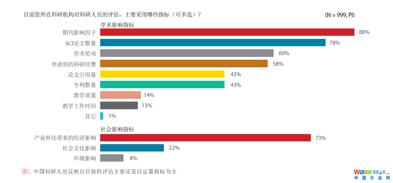圖7.中國科研人員反映出目前的評估主要還是以定量指標(biāo)為主