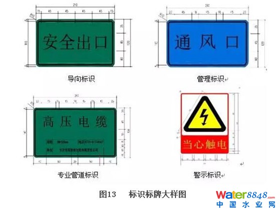 圖集將標(biāo)識系統(tǒng)分為導(dǎo)向標(biāo)識、管理標(biāo)識、專業(yè)管道標(biāo)識、警示標(biāo)識4大類,對管廊管道顏色設(shè)置,標(biāo)牌尺寸、顏色、設(shè)置位置、設(shè)置內(nèi)容、字體等均做出詳細規(guī)定,并提供樣圖。