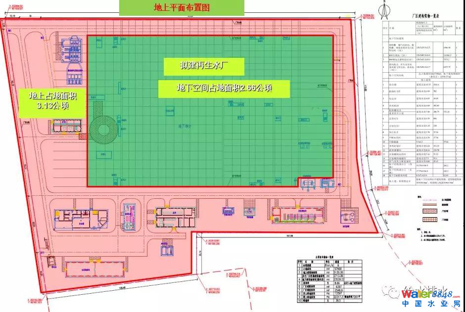 工程為8萬(wàn)噸處理規(guī)模,占地面積5.79公頃,整個(gè)處理廠地下部分地下部分2.66公頃其他為地上部分。整個(gè)處理廠地下部分最深的地方埋深在16米,建好的地下部分,地下廠的上面有一米多的覆土,它的整體地方,整個(gè)廠的綠化率,如果不算廠的部分是32%的綠化率。
