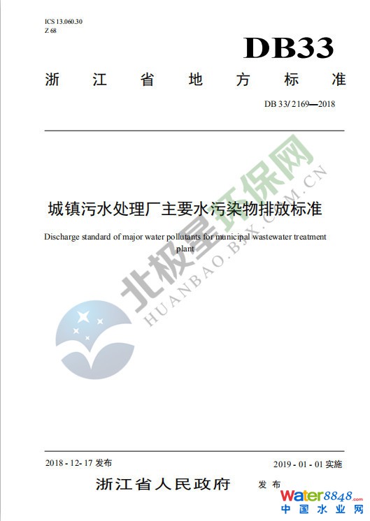 正式稿公布!浙江省《城鎮(zhèn)污水處理廠主要水污染物排放標(biāo)準(zhǔn)》將于明年1月1日起實(shí)施!