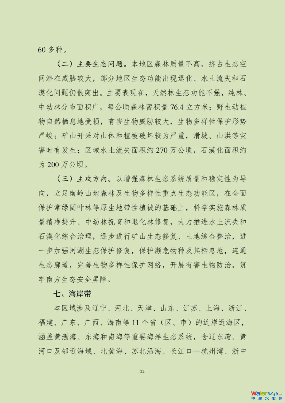 《全國(guó)重要生態(tài)系統(tǒng)保護(hù)和修復(fù)重大工程總體規(guī)劃(2021-2035年)》 著重抓好國(guó)家重點(diǎn)生態(tài)功能區(qū)、生態(tài)保護(hù)紅線、重點(diǎn)國(guó)家級(jí)自然保護(hù)地等區(qū)域的生態(tài)保護(hù)和修復(fù),解決一批重點(diǎn)區(qū)域的核心生態(tài)問題