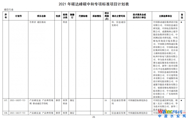 工信部2021年“雙碳”專項(xiàng)行業(yè)標(biāo)準(zhǔn)制修訂計(jì)劃