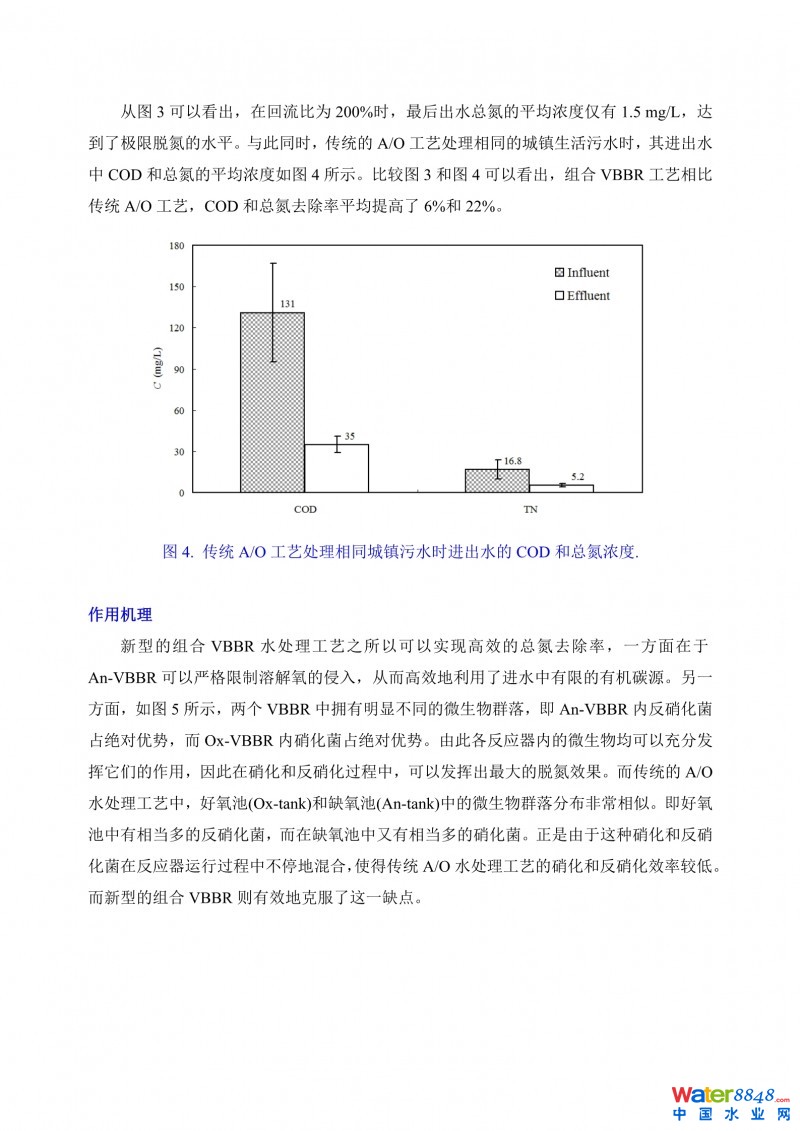 4. 傳統(tǒng)A/O工藝處理相同城鎮(zhèn)污水時(shí)進(jìn)出水的COD和總氮濃度.