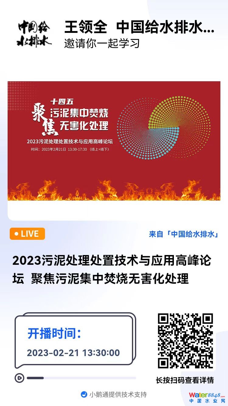 核心提示:中國給水排水直播平臺會議通知 | 2023污泥處理處置技術(shù)與應(yīng)用高峰論壇