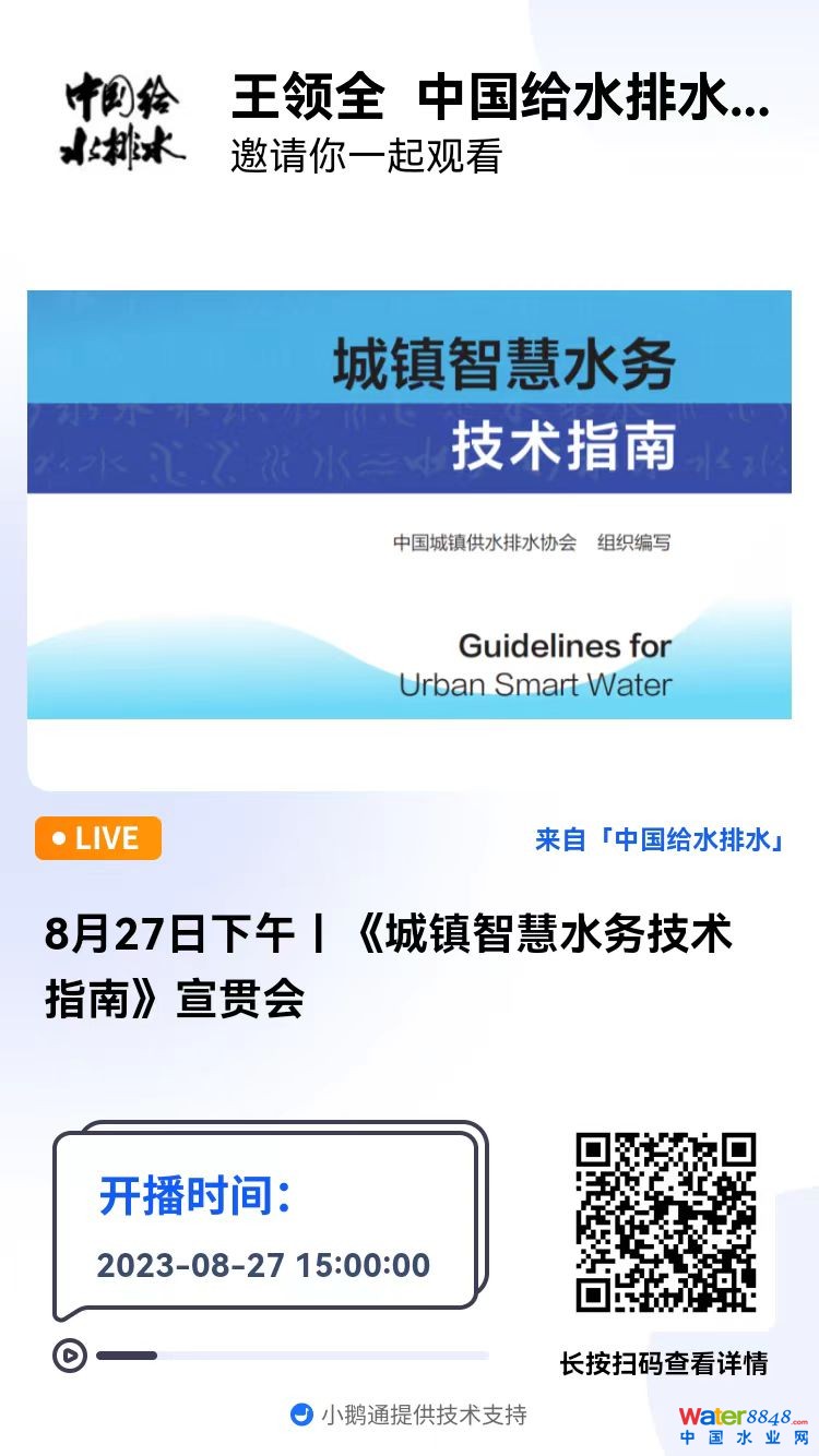 放大字體  縮小字體 發(fā)布日期:2023-08-27  來源:中國給水排水直播平臺報告題目:《城鎮(zhèn)智慧水務(wù)技術(shù)指南》   瀏覽次數(shù):545