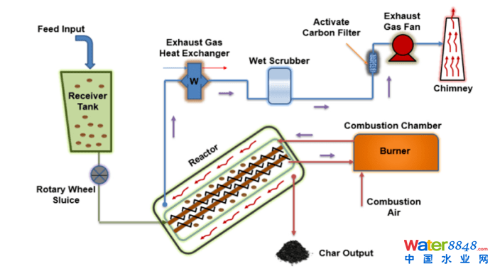 德國ELIQUO STULZ公司提供的Pyreg®碳化工藝也采用了外熱螺旋推進碳化反應(yīng)器,如圖10所示。