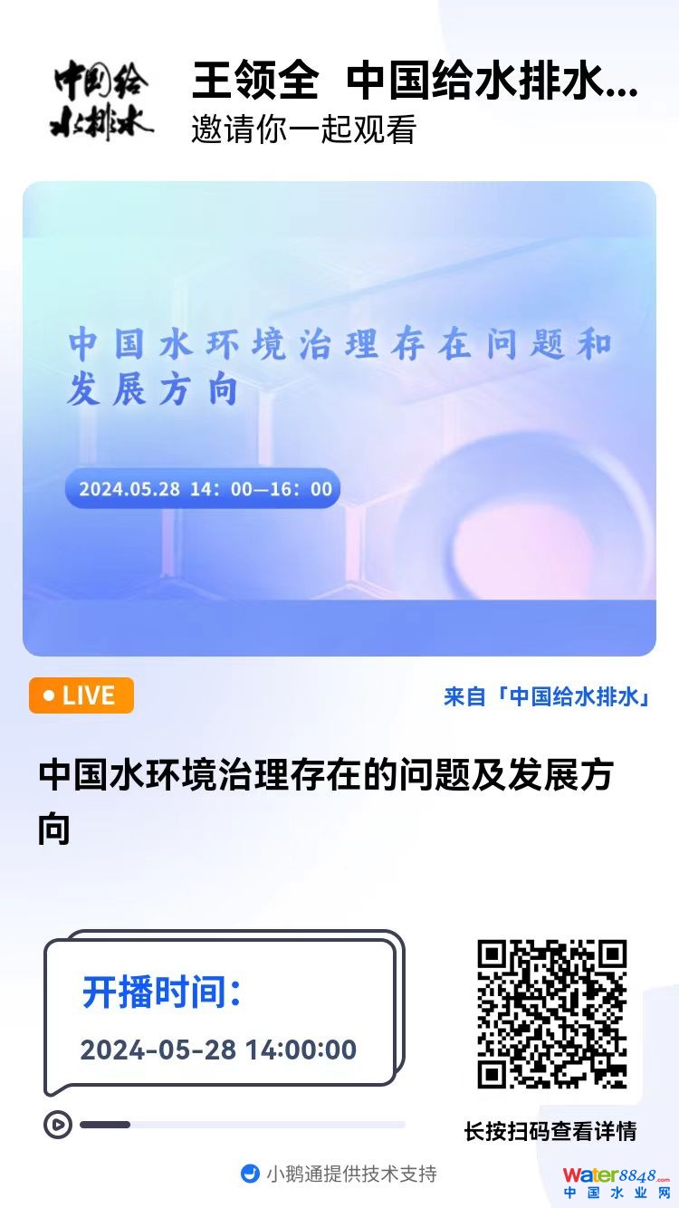 中國水環(huán)境治理存在的問題及發(fā)展方向 直播時間:2024年5月28日(星期二)14:00—16:00 2024-05-28 14:00:00 開始