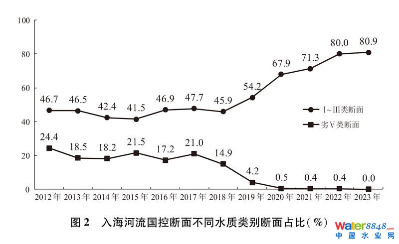 抓好入海河流污染防治。入海河流是陸源污染物輸入海洋的最重要途徑。中國(guó)積極提升城鎮(zhèn)污水處理質(zhì)效,建設(shè)改造雨污分流管網(wǎng),加強(qiáng)污水處理行業(yè)監(jiān)管,降低城鎮(zhèn)生產(chǎn)生活污水對(duì)入海河流水質(zhì)影響。2012年以來(lái),沿海地區(qū)污水處理基礎(chǔ)設(shè)施建設(shè)顯著提速,地級(jí)以上城市污水處理廠基本完成一級(jí)A提標(biāo)改造。開(kāi)展農(nóng)村環(huán)境整治,“十四五”以來(lái),沿海省份新增完成1.7萬(wàn)個(gè)行政村環(huán)境綜合整治,編制完成170個(gè)畜牧大縣畜禽養(yǎng)殖污染防治規(guī)劃,農(nóng)村生活污水治理率超過(guò)45%,大幅降低農(nóng)業(yè)農(nóng)村污水排放。著力破解流域氮排放過(guò)量的近岸海域水質(zhì)污染和富營(yíng)養(yǎng)化問(wèn)題,建立沿海、流域、海域協(xié)同一體的綜合治理體系,探索將總氮控制范圍向入海河流上游拓展,推動(dòng)入海河流實(shí)施“一河一策”總氮治理。2012—2017年中國(guó)入海河流國(guó)控?cái)嗝嫠|(zhì)整體保持穩(wěn)定并有所好轉(zhuǎn),2018年以后水質(zhì)整體大幅好轉(zhuǎn)。目前,入海河流國(guó)控?cái)嗝嫠|(zhì)優(yōu)良(Ⅰ~Ⅲ類)斷面數(shù)量約占整體的五分之四左右,喪失使用功能(劣Ⅴ類)斷面基本消除。
